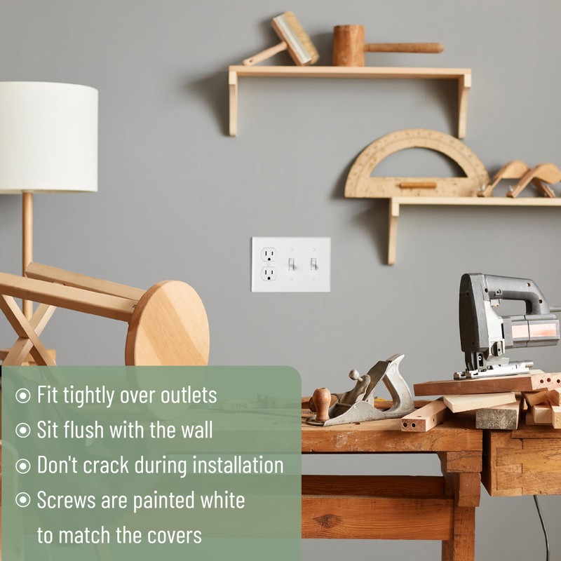 Bates- 3-Gang Light Switch and Outlet Cover Plate, Standard Size 4.5" x 6.4", White, 1 Duplex/2 Toggle Outlet Light Switch Covers with Matching Screws