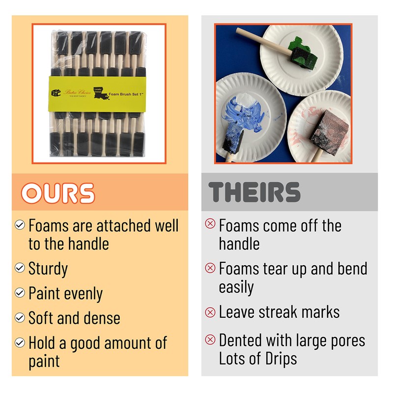 • Exceptionally crafted with high-quality foam firmly adhered to wooden handles, these brushes promise not just a smooth application but also a sturdy grip, escorting you gracefully through every project.