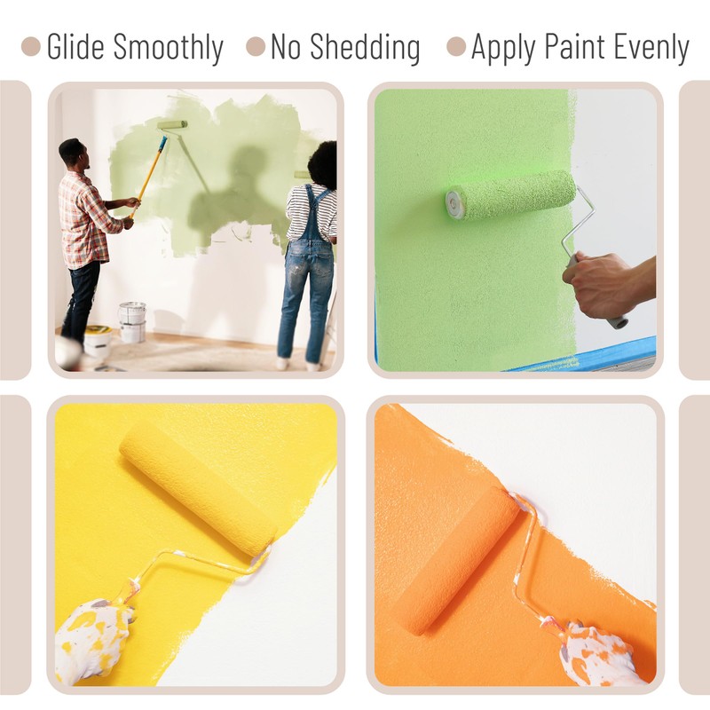 - This set comes with 2 roller frames, 2 roller covers (9" size), 2 roller covers (4" size), and 1 high-density foam brush, perfect for various painting projects.