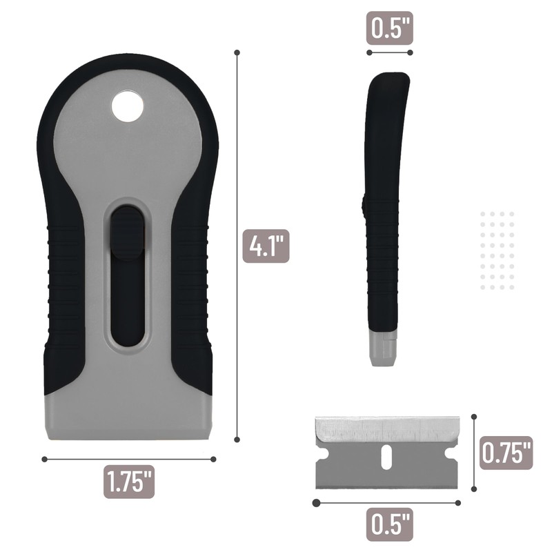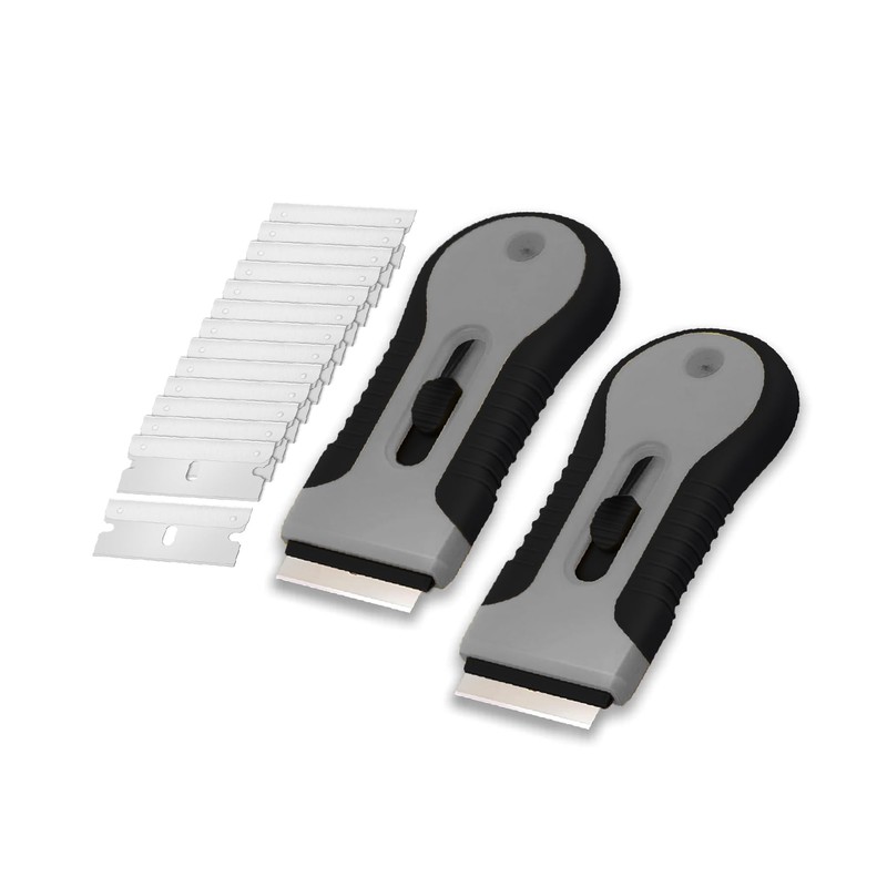 Bates- Razor Blade Scraper Tool Set, 2 Pack, Black & Gray, 30 Extra Stainless Steel Blades, Anti-Slip Ergonomic Handle Design, Razor Scraper Tool for Glass