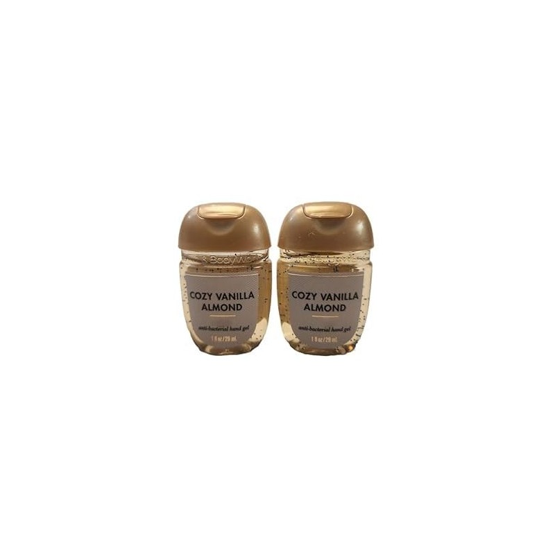 Bath and Body Hand Sanitizer Travel Size 2 piece Bundle Set Hand Gel - 1 Fl Oz each Scent (Cozy Vanilla Almond)