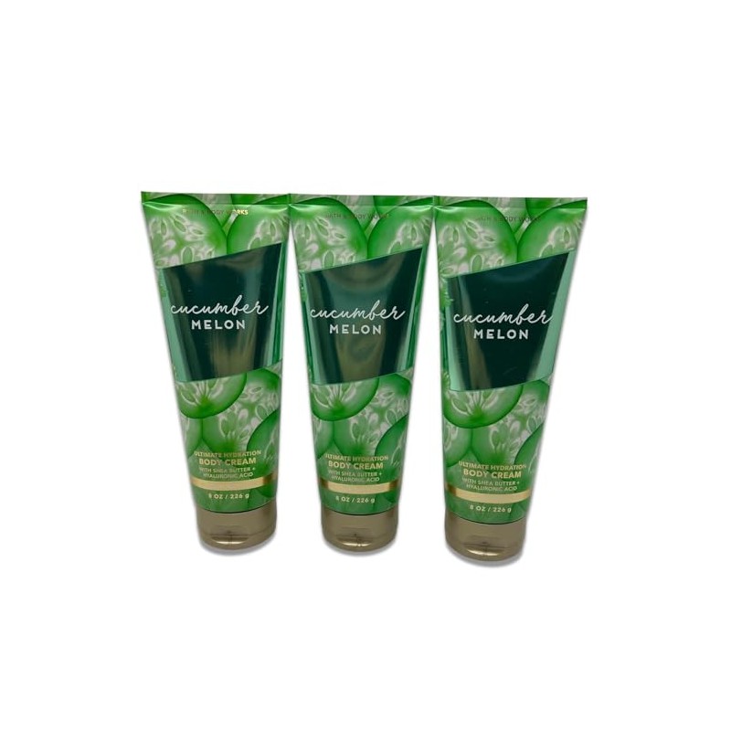 Bath & Body [3 Pack] BODY CREAM 24 Hour Moisture 8 oz / 226 g (Packaging may vary) (Full Size, CUCUMBER MELON)