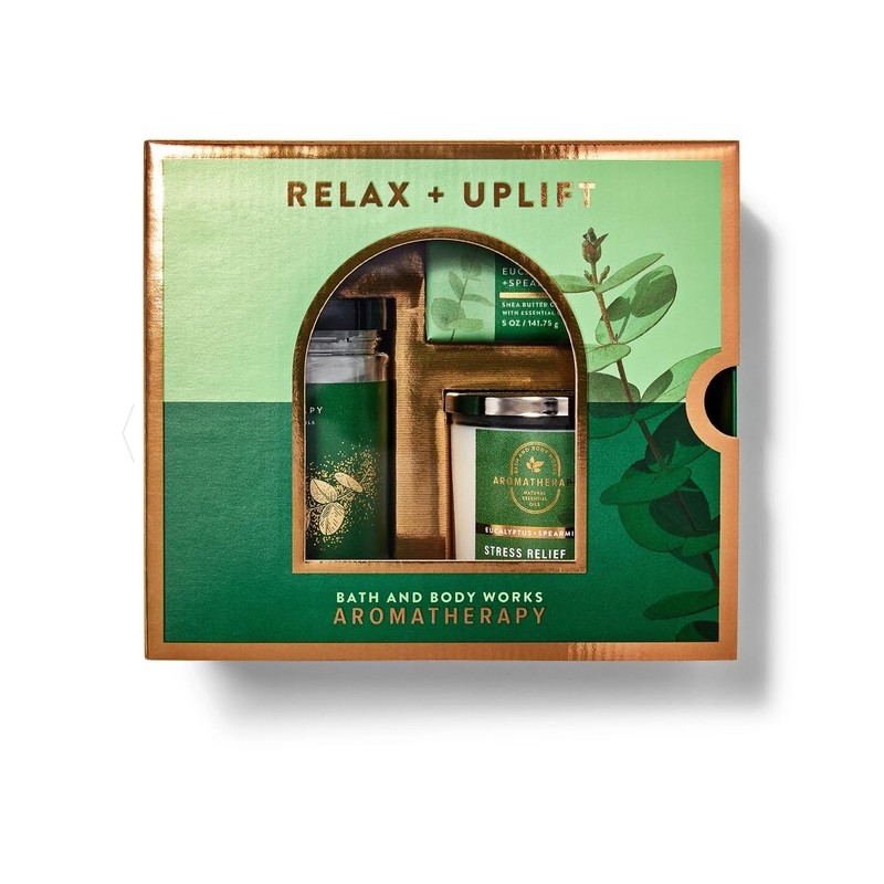 Bath BodyAromatherapy Relax + Uplift Gift Set, Eucalyptus Spearmint, Stress Relief Candle, Bath Steamer, Soap