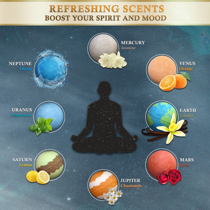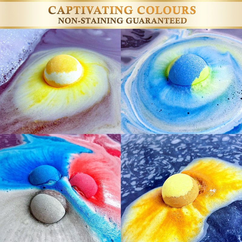- ⭐ FEEL THE GALAXY SENSATION: Each 60g planet bath bomb is carefully handmade with a unique luxurious fragrance for mental relaxation combined with dashing colours released within your bath tub to enhance your mood.