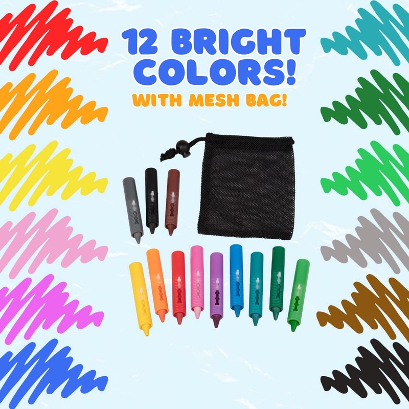 Bath Crayons Super Set - Set of 12 Draw in the Tub Colors with Bathtub Storage Mesh Bag -Non-Toxic, Safe for Children, Won't Disintegrate in Water -Art Project for Kids and Toddlers
