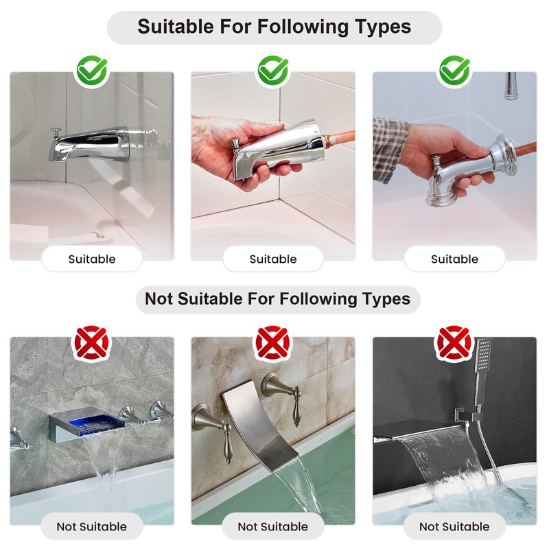 - 【FITS MOST MODERN TUB FAUCETS】 Silicone fitting can stretch and mold around most tub spigots