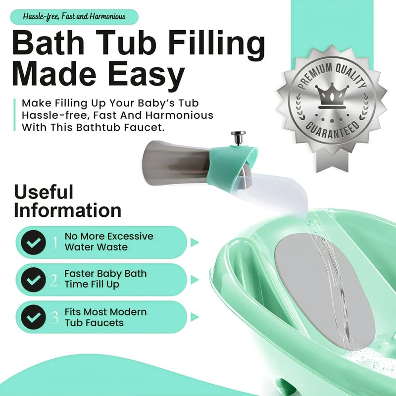 Bath Helper - Bath Tub Faucet Extender - Guides Water Directly from Faucet to Baby Bath Tub Without Excessive Water Waste and Splashing (Green)