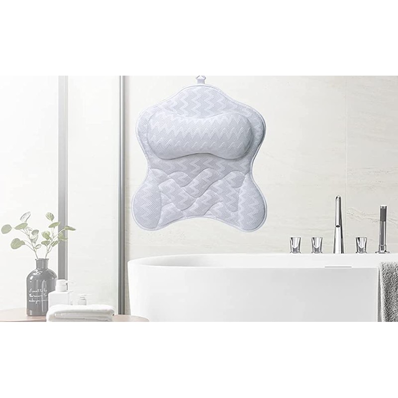 - 3D MESH FABRIC BUTTERFLY-SHAPED DESIGN With its 3D ventilation, your breathable bath pillow allows constant, refreshing airflow. Our Butterfly-Shaped design seamlessly contours and supports your head, neck and shoulder to ease those tense and tired muscles after a long day.