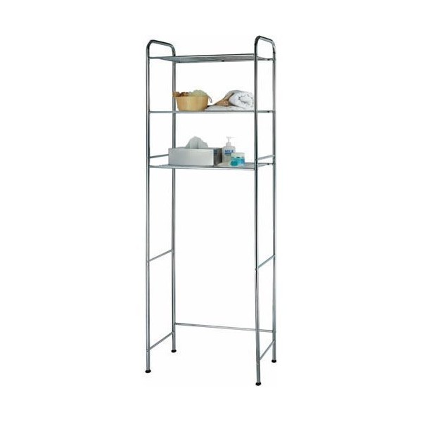 Clean and contemporary look. Mirror polished chrome finish with wire shelves. Fits over most toilets.