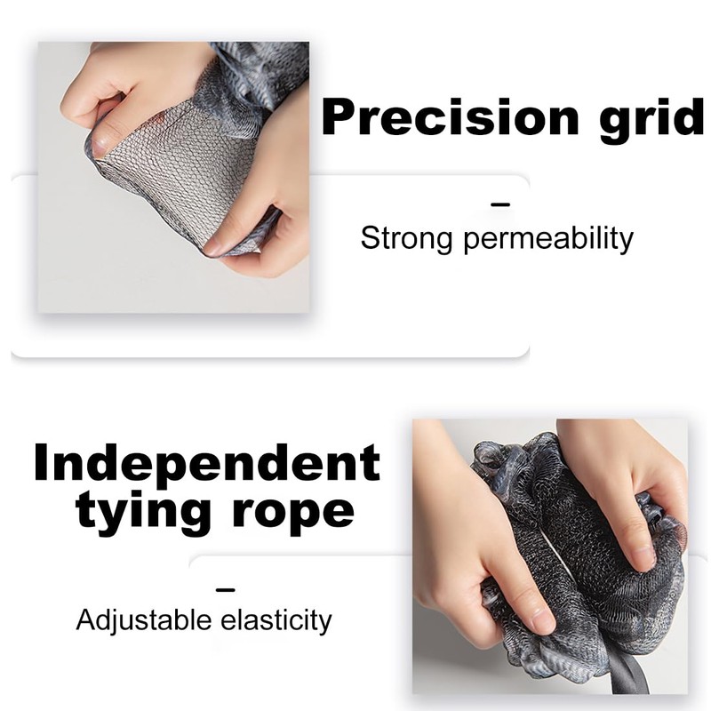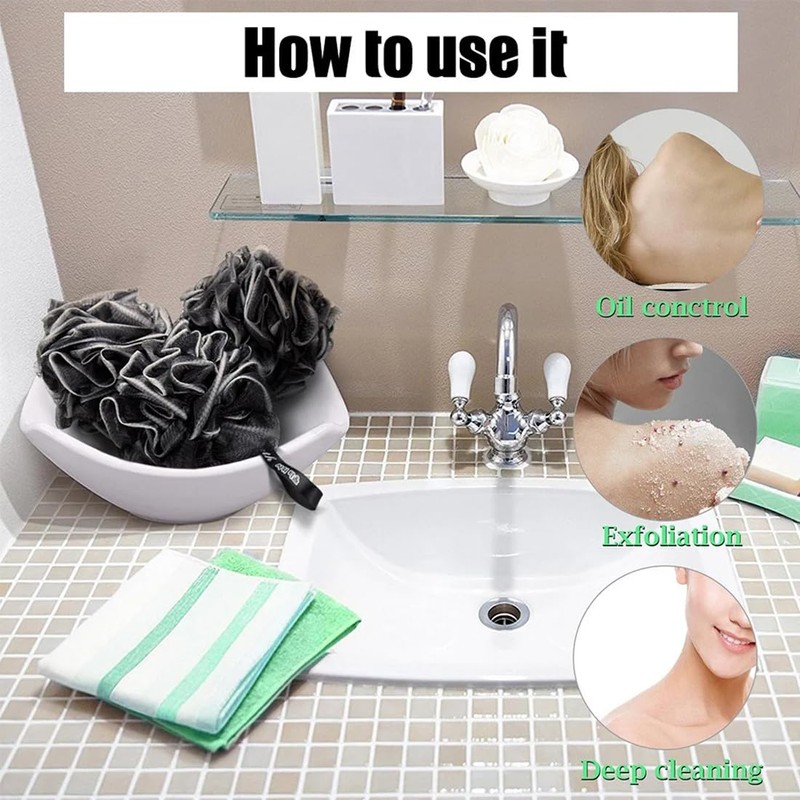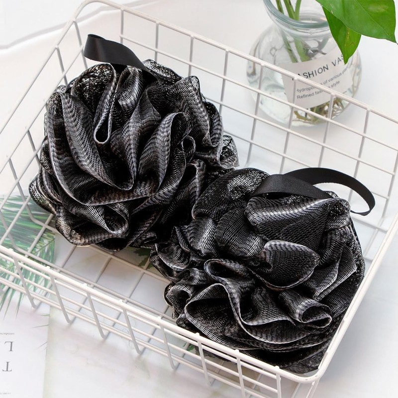 - ✨ 【Versatile and Practical】This black mesh loofah body scrub brush is extremely versatile. It can not only be used for body scrub, but also as a bath ball, massager and much more. With its handy size, it is perfect for use in the bathroom. Make your shower time more enjoyable and effective.
