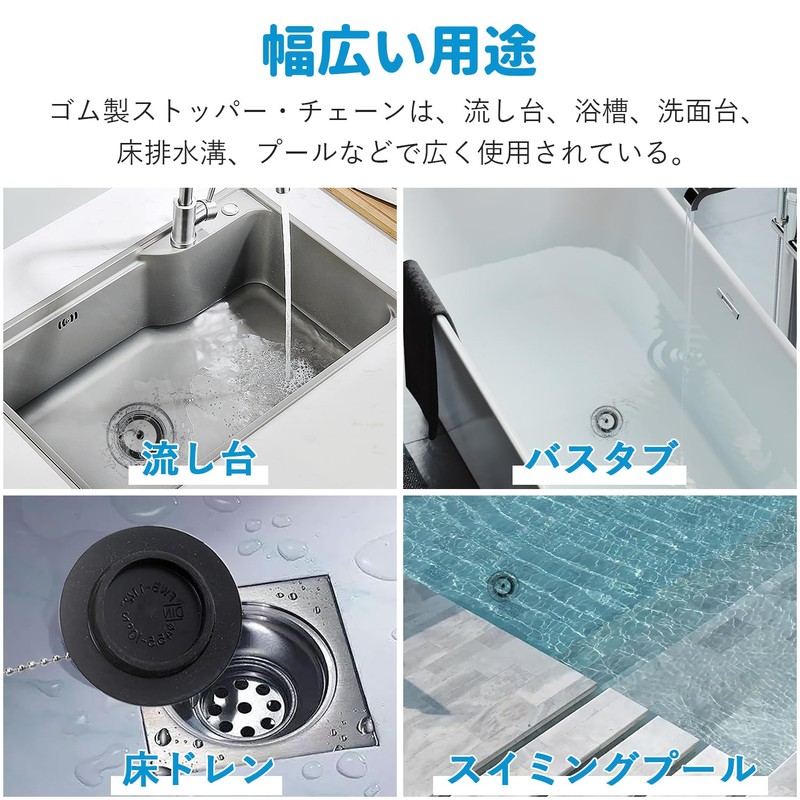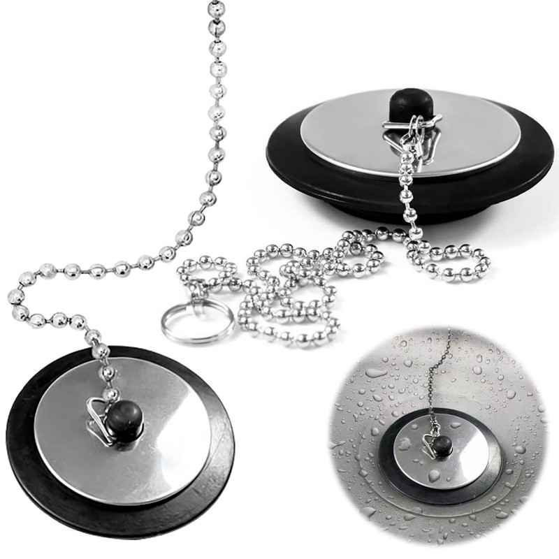 - Product Features: This rubber stopper comes with a chain so it can be easily tightened or removed from the drain to prevent clogging