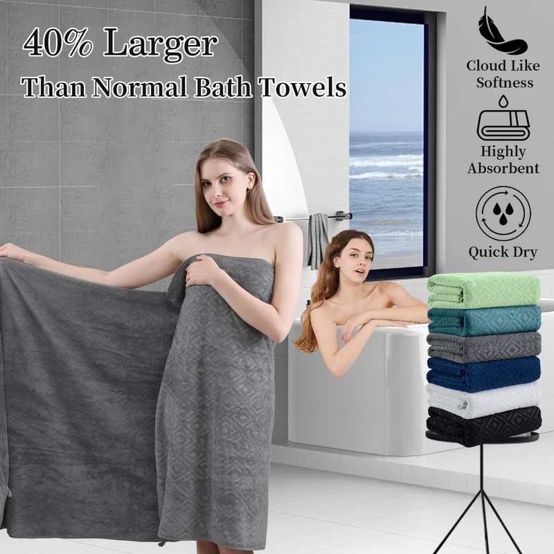 - HIGH QUALITY WATER ABSORPTION BATH SHEET:Premium bath towels,feel soft and cozy,bathroom towels have high water absorption and fluffy,towels very suitable for hands and body,Soft bath towels giving you a comfy experience after bathing, and bath towels can quickly absorb the moisture on your body,high quality microfiber bath towel ensure optimum softness, fluffiness and wonderful absorbency.