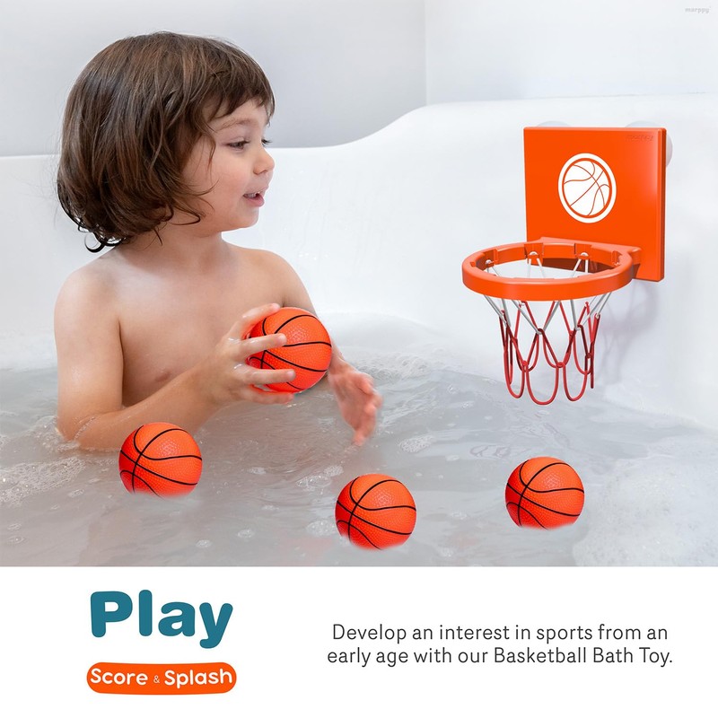 - BATH BASKETBALL HOOP: Toddlers will delight in engaging with these bath toys with 4 soft and mold free balls included in our kids' bath toys set. The bathtub basketball hoop attaches easily to any smooth surface using the sturdy suction cup. This ensures a fun bath time experience with these bath basketball hoops, all presented in a Gift-Ready Box.