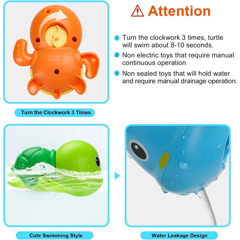 Bath Toys, Cute Swimming Turtle Baby Bath Toys for Toddler 1-3, Water Pool Float