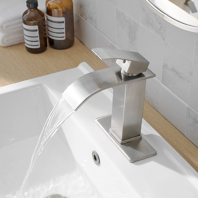 - 【Unique Waterfall Spout Design 】We adopt the slope waterfall water outlet design to bring a new experience to the families who use the basin, make the bathroom different and meet the needs of DIY home decoration. The simple and versatile shape is suitable for different styles of bathrooms. The slideway at the water outlet also adopts electroplating process, which is rustless and more durable.
