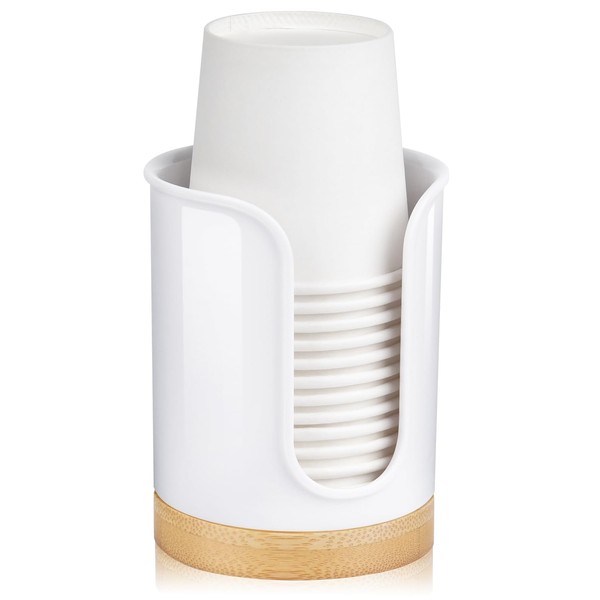 Bathroom Cup Dispenser - Small Cup Holder for Dixie 3 oz Bathroom Cups, Mouthwash Cups, 3 4 Ounce Cup Dispenser - PC/Bamboo, White, Pack of 1