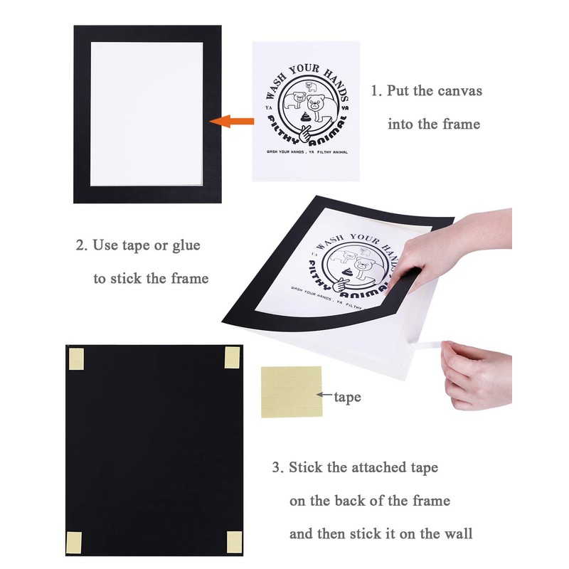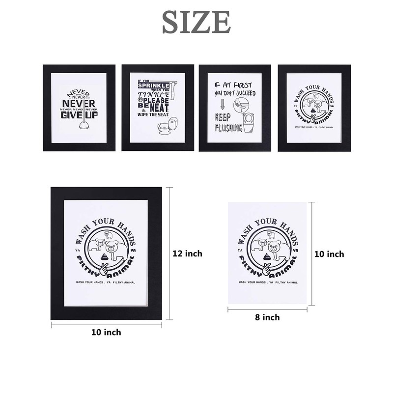 Bathroom Decor Wall Art-with Frames,set of 4 【MATERIAL】 Wall Art Prints: Canvas Frame: Cardboard 【PACKAGING】 Wall Art Prints*4 Black Cardboard Frames*4 Tape Sticker*1 【SIZE】 Wall Art Prints: 8 * 10 inches Frame: 10 * 12 inches