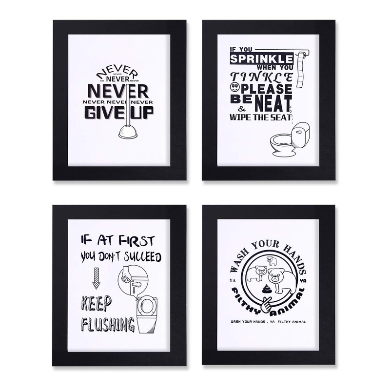 - Want to Add a Toilet Humor?That’s so easy!Just stick our Bathroom Art Decor set to your Bathroom.Nice look and easy to decorate, will surely make your guests laugh.