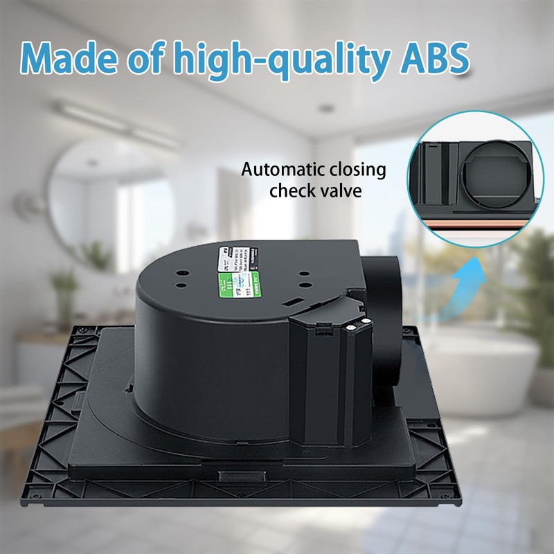 - Sturdy and Durable: The bathroom vent fan with LED light is made of high-quality ABS material, which is resistant to high temperatures and has a long service life. In addition, after power failure, the ventilation damper at the rear of the exhaust fan will automatically close to prevent dust and odors from entering your bathroom again.