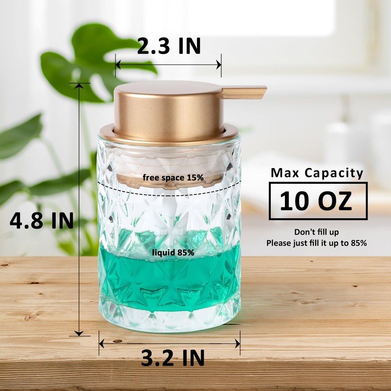 - Easy-to-Press-Design - The Glass Hand Soap Dispenser uses a great quality pump made of premium Glass, we can easily squeeze out the liquid, the nozzle down is not easy to leave excess soap.