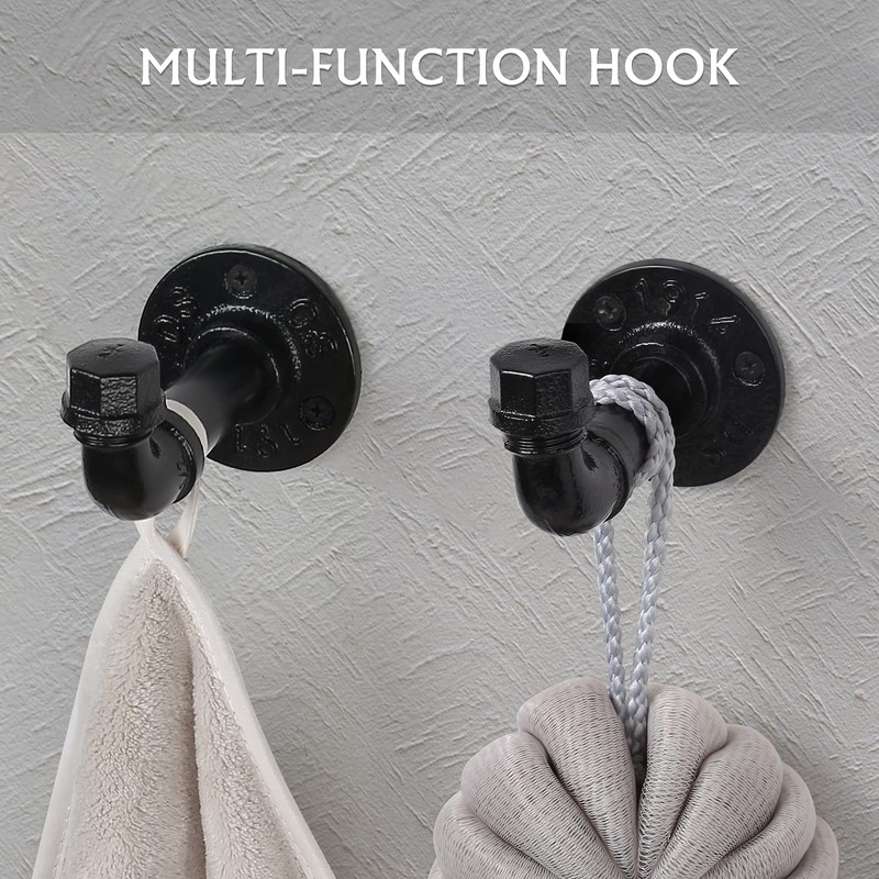 Bathroom Hardware Accessories Set If you happen to need bathroom towel accessories kit for your new bathroom, Then our industrial towel rack set is just for you! Wall-mounted paper towel holder, round towel ring, towel bar set and towel robe hooks save space for you, And you can install it in your appropriate location. Industrial style also gives your bathroom a decorative feel. Widely Used Towel Rack for Wall 18 and 25 inch bathroom towel bars can hang more bath towels, easy to get and save space for bathroom storage! 2 Pack Towel Ring 180°reversible industrial hand towel ring, flexible and not rigid. Bathroom hand towel ring fits small towels; Robe Towel Hooks The multi-function hooks can be used to hang bathrobes, towels, bags, coats, etc, which are enough solid and sturdy. Bath Wall Paper Holder Two toilet paper roll holders are perfect for the toilet and sink. Wall mount toilet paper holder can be installed in a convenient location for older and younger.