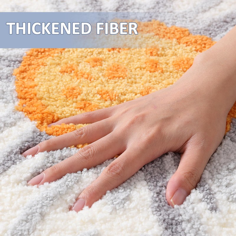 - 🌸【Non Slip & Super Absorbent】The cute bath rug use TPR backing material, has excellent non-skid performance, strong and durable. Please place the bath carpet on dry floor and make sure the backing is dry and clean to ensure the safety of you and your family. Good absorbent performance keep your feet dry.