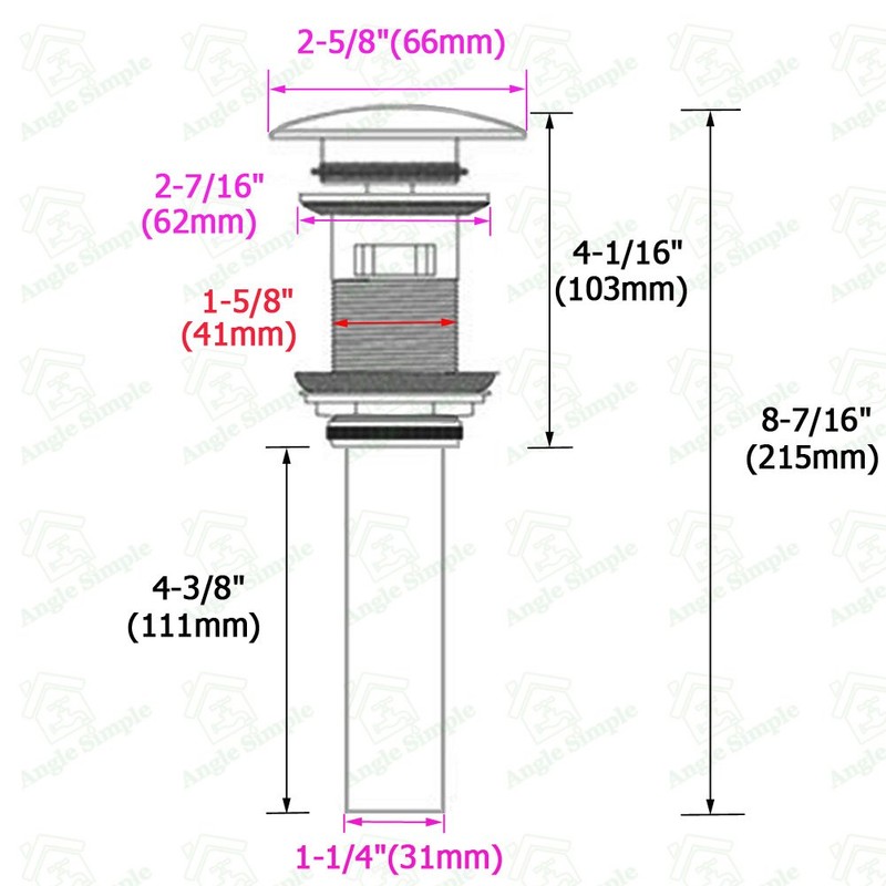 - STANDARD SIZE FITS MOST SINKS: apply to standard bathroom undermount sinks or vessel sinks that HAVE OVERFLOW, drain hole diameter required: 1-5/8" to 2", diameter of the top flange is 2-5/8".