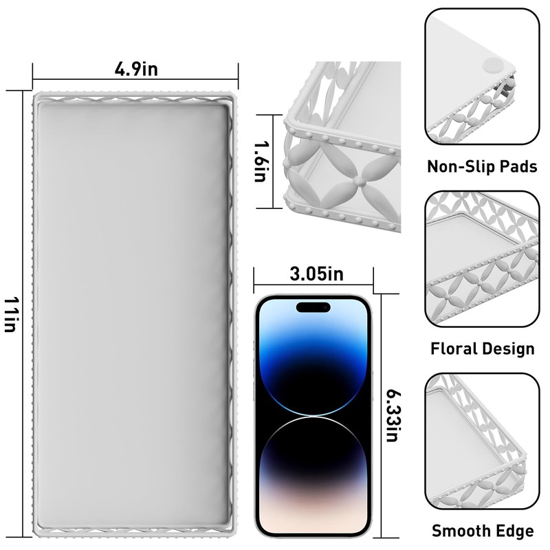 Bathroom Vanity Tray - Small Rectangle Decorative Tray - 11 Inch White Perfume Makeup Tray for Bathroom Counter
