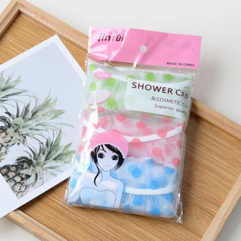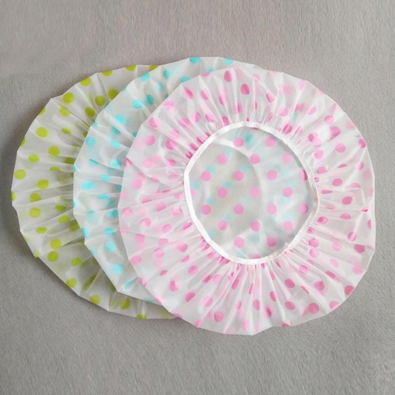 Bathroom Waterproof Shower Cap, 3pcs Polka Dot Pattern Hair Cover, Portable Bath Hair Cap for Home Dormitory Outdoor Travel