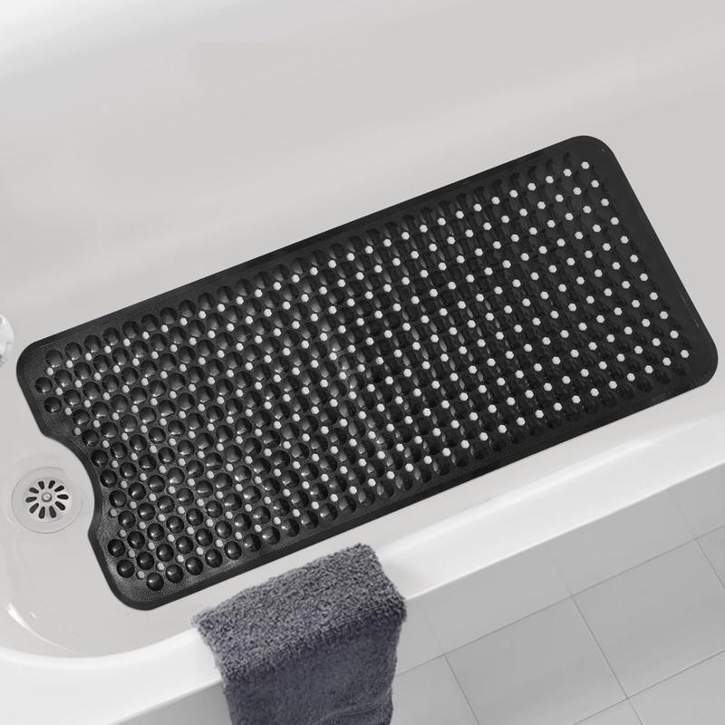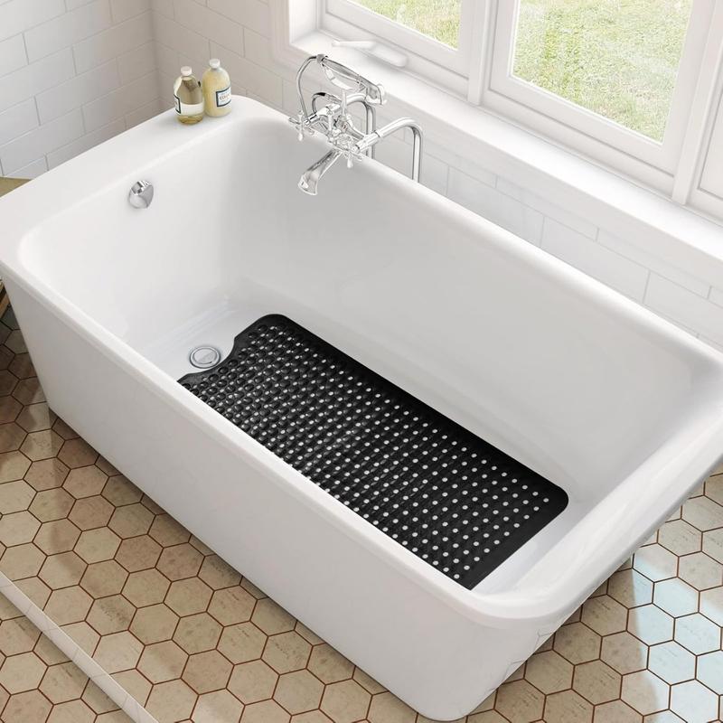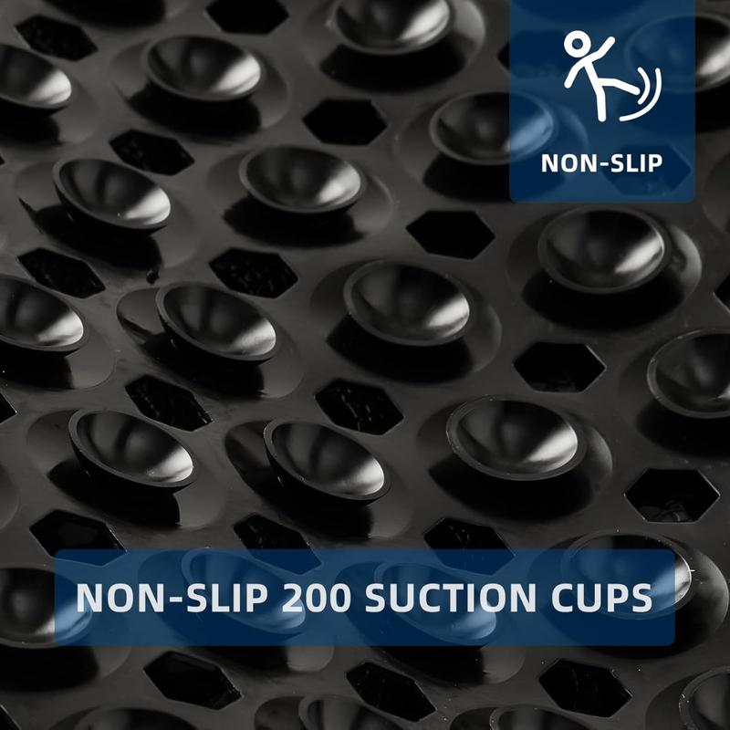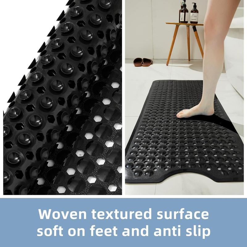 Bathtub and Shower Mats,Long Non Slip Bath Mat, Bath Tub Mat with Suction Cups & Drain Holes for Bathroom,Machine Washable Bathroom Mats(Black)