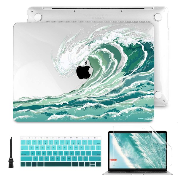 Batianda MacBook Air 13 Inch Case 2020 2019 2018 Release A2337 A2179 A1932,Pattern Clear Hard Case Shell Cover with Keyboard Cover & Screen Protector for New MacBook Air 13 Retina & Touch ID (Wave)