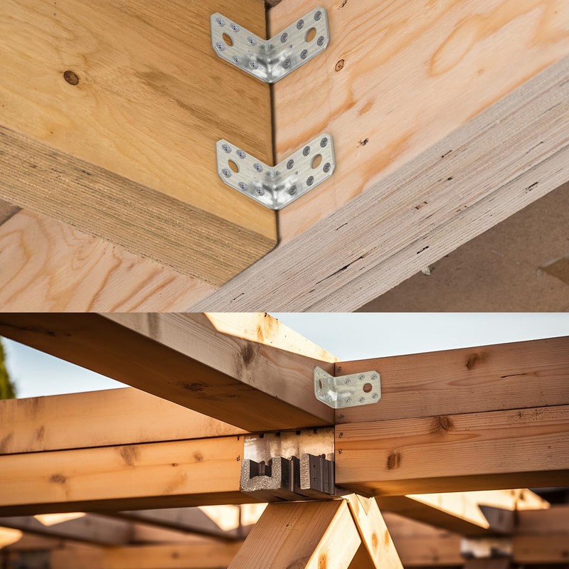 - Quality material: the galvanised brackets are made of high-quality strong galvanised sheet steel and allow a robust and durable connection. Its structure ensures strength and corrosion resistance making it an excellent choice for indoor and outdoor applications.