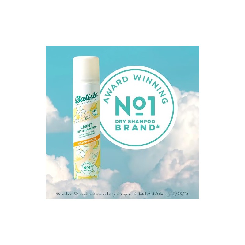 The revitalizing formula of Batiste Light Mellow Melon Dry Shampoo uplifts locks with a subtle scent, lightweight feel, and invisible finish. So, go on. Run your fingers through your clean-looking hair without a trace of powdery white tint left behind. A holy grail dry shampoo for women with sensitive scalps, Batiste Light helps you attain undeniable results. Watch as the lightweight aerosol mist gently removes oil and grease, haloing your hair with a sheer, invisible matte finish. Even in the final hours before wash day, Mellow Melon’s soft, delicate scent blends florals with a touch of creamy melon that’s just right for day or night. Simply shake the can, section your hair, and spray as much as you want 12 inches from your roots. Massage it into the roots of your hair, then, style. With Batiste Light Dry shampoo, hair and heart become eternally fresh and floaty, free of heavy residues, odors, and bad hair days.
