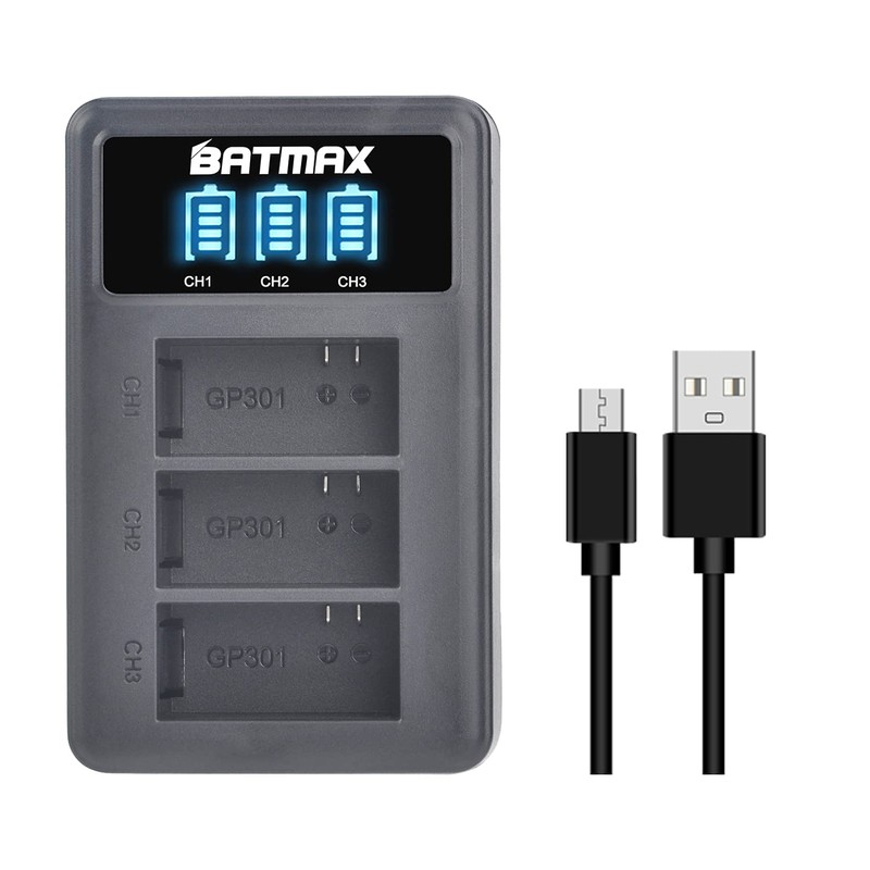Batmax 3Pcs AHDBT-301 Li-ion Battery + 3-Slots LED USB Charger for GoPro Hero 3, Hero 3+ GoPro AHDBT-301,AHDBT-302 Cameras