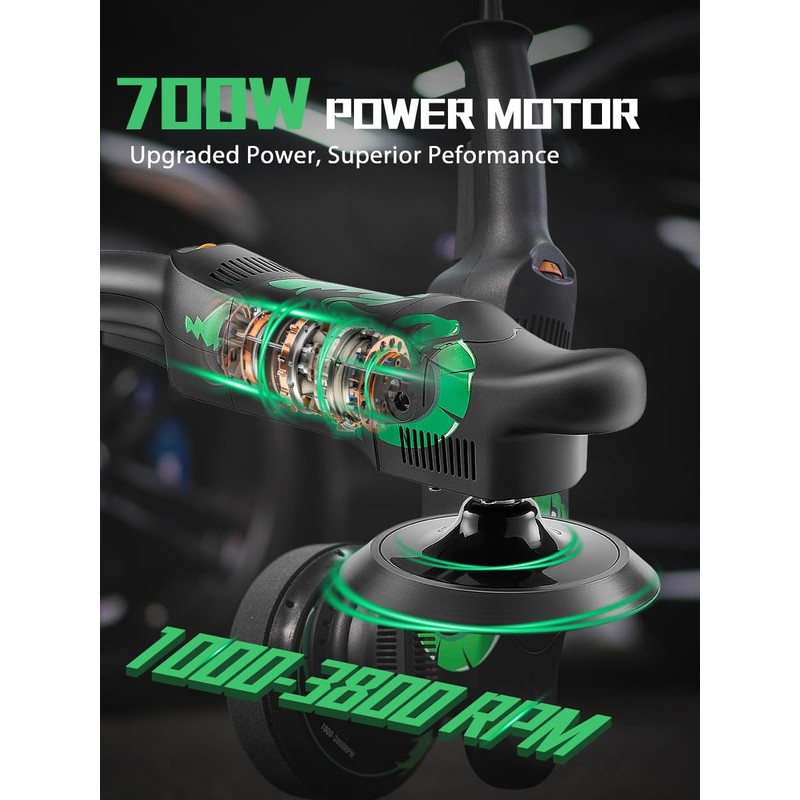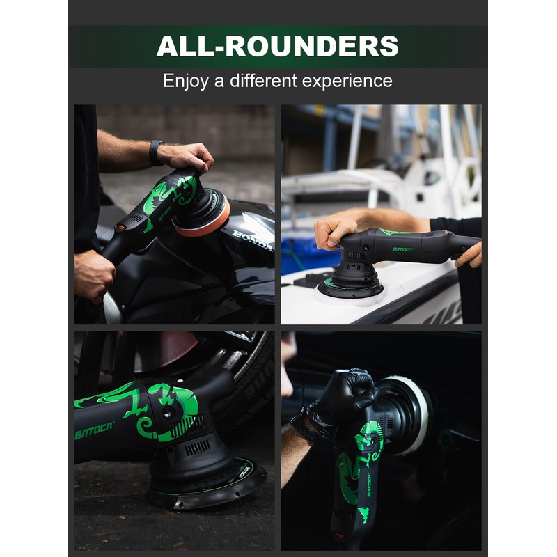 • Unique Design & Ergonomic Design: BATOCA professional design team is dedicated to creating something new and different car buffers and polishers. Unlike regular buffer polisher, a green chameleon encircles the body of our BATOCA DA polisher. It is unprecedented cool and helps to make your car cool and shiny. Comfortable front grip, curved body sense handle is not easy to fatigue, more accurate operation.