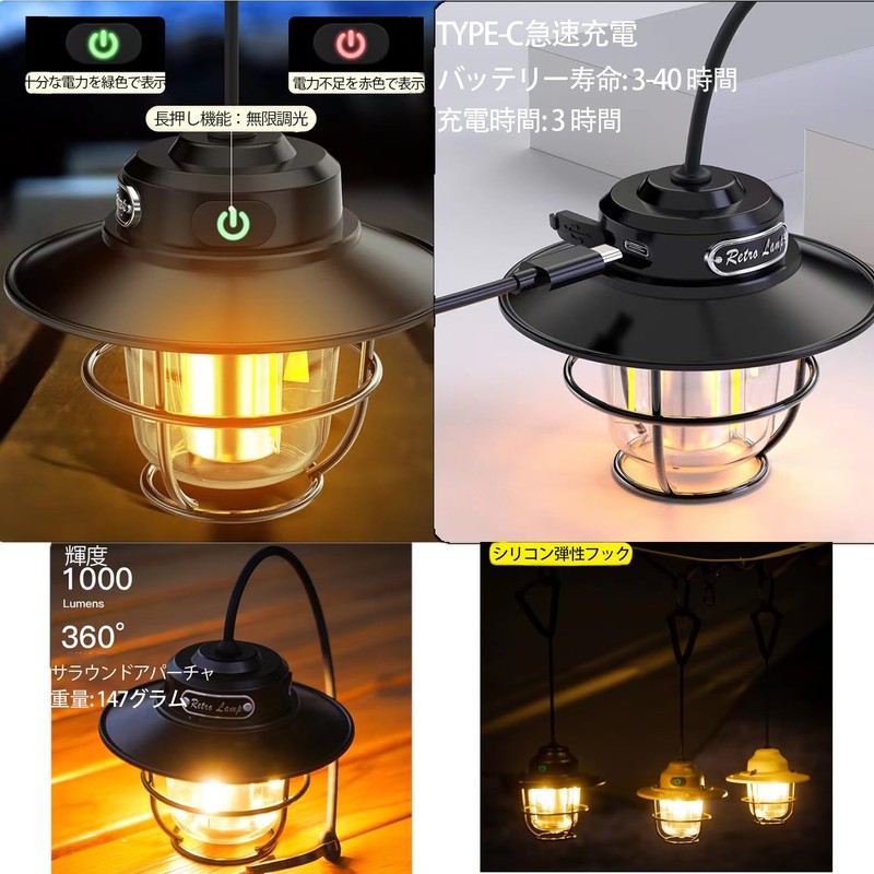 - 【Stepless Dimmable Lantern LED】This retro tent camping light has 4 lighting modes (warm light, white light, warm yellow light, warm white light) to create the perfect atmosphere for any occasion. Stepless dimming feature allows you to easily adjust the brightness to your specific needs