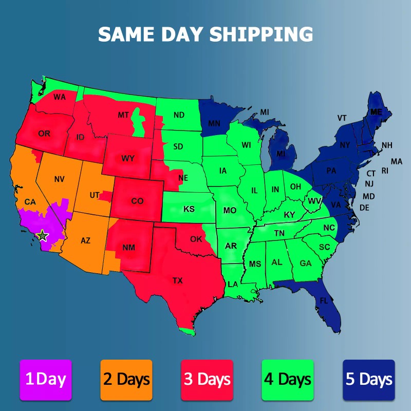 All domestic orders will be shipped via USPS, UPS or FedEx from our US warehouse and usually arrives to your door in about 2-7 business days.
