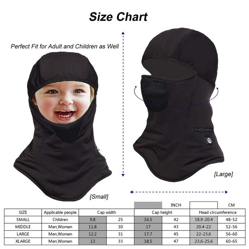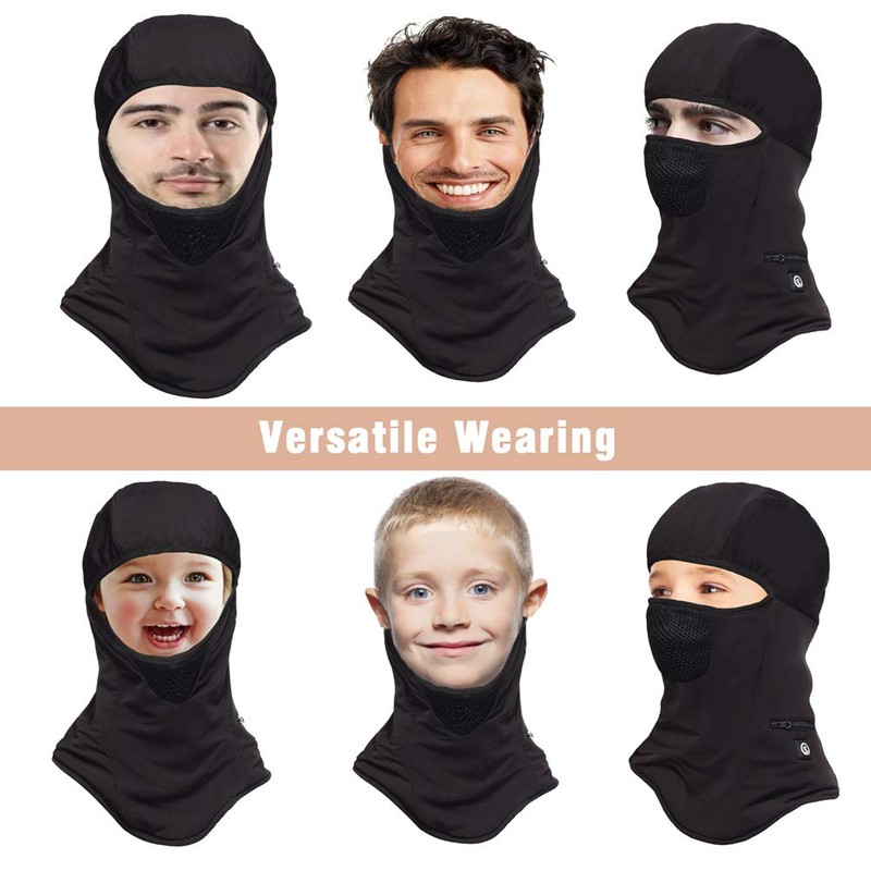 - 【Excellent warmth】Suitable for skiing, motorcycle, cycling,running, snowmobile, mountaineering, hunting, hiking, fishing, winter camping other outdoor activities.Keep your head warm in some very serious cold. Three equipments in one :1 heated balaclava = 1 face mask + 1 hat + 1 scarf.