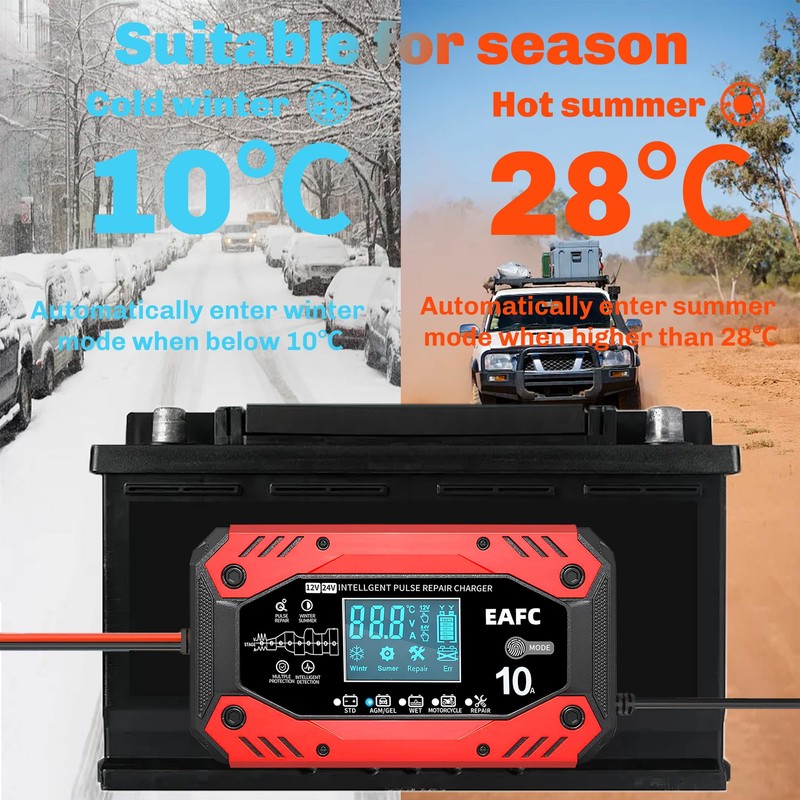 Are you tired of dealing with weak or dead batteries in your vehicles or boats? Look no further than the EAFC 10-Amp Battery Charger. Designed with the latest technology and features, this fully-automatic smart charger is the perfect solution for charging and repairing lead-acid automotive, marine, and deep-cycle batteries.