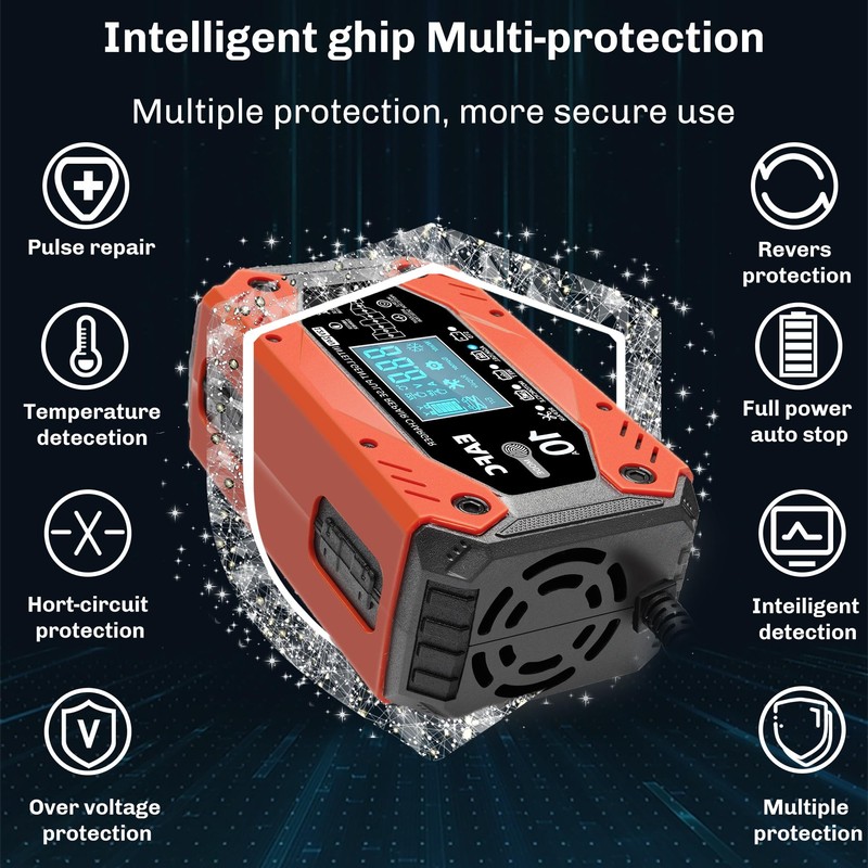 - 【Enjoy Precision Charging, Your car deserves the best】Using a backlit LCD, the battery charger automotive clearly and visibly shows an LCD screen displaying the charging status and battery status; An integrated thermal sensor detects the ambient temperature and alters the charge to eliminate over-charging in hot climates and under-charging in cold climates.