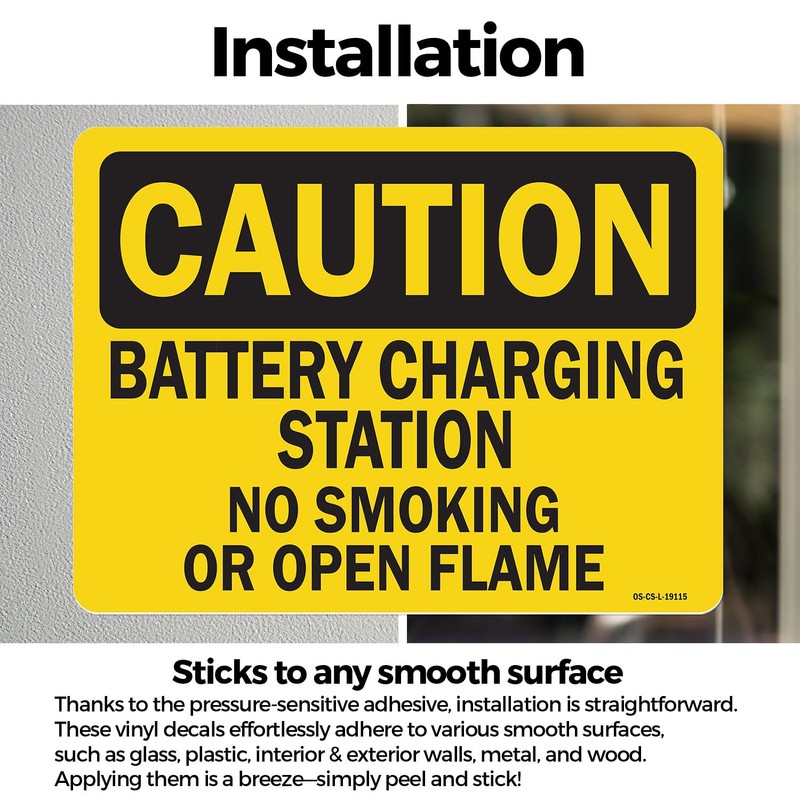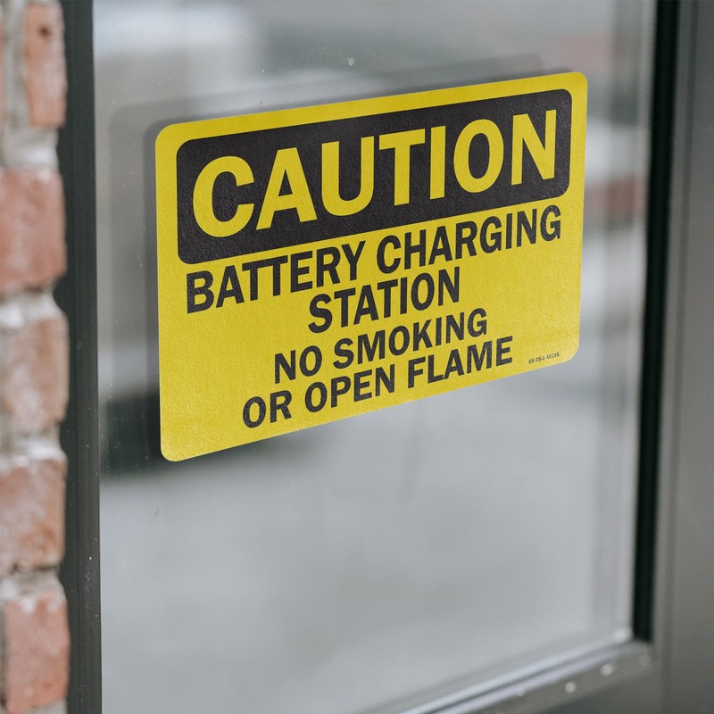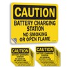Battery Charging Station No Smoking Or Open Flames OSHA Caution Vinyl Decal Label 5 Inch x 3.5 Inch - 10 Pack