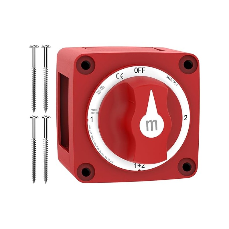 Battery Disconnect Switch, Malictele 300A 1-Both-2-Off Heavy Duty Cutoff Switch 12V-48V Waterproof Ignition Protected Power Kill Switch with Knob for Marine, Boat, Car, RV, Truck Battery - 4 Position