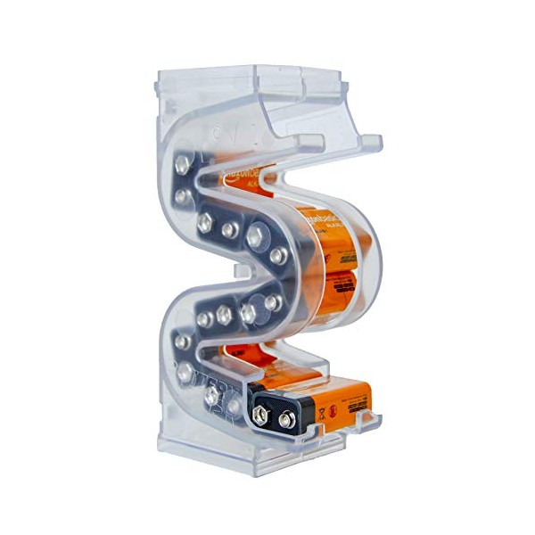 - EFFICIENT STORAGE - Easily and conveniently holds up to 10 9V Batteries. Its compact "S" design packs more batteries into less space.