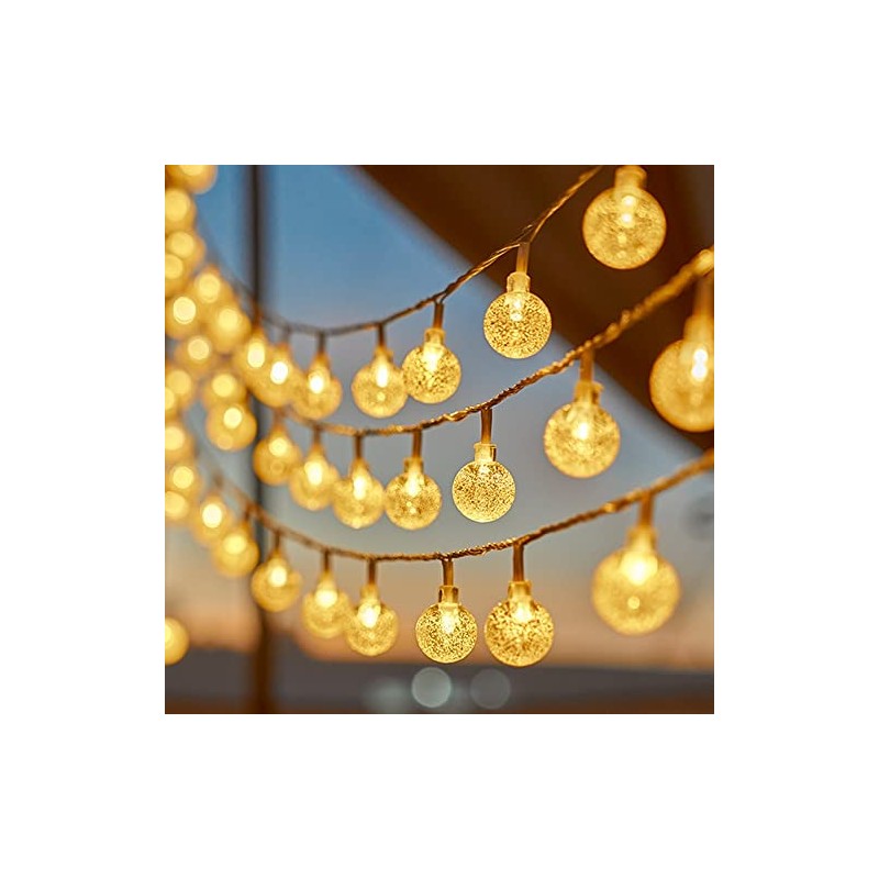 - 【33FT 80LED Crystal Globe FAIRY STRING LIGHT】 33FT 80 LED Decorative Fairy String Lights With 80 Super Bright LED beads, 0.69inch 17.5mm bulb diameter. Exquisite new upgraded crystal bubble ball has a crystal clear warm white color and contains many small bubbles can refract the beautiful light.Wam white Crystal Ball Lights Makes everyone enjoy the best moment, share the happiness and built an unforgettable memory