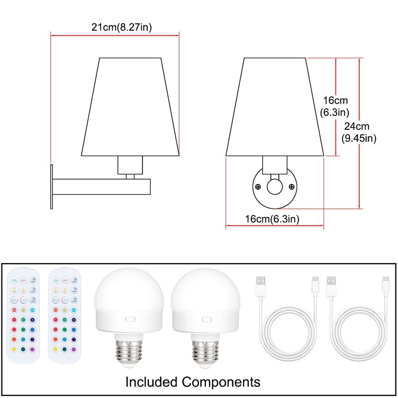 - 【Battery Operated Wall Sconces Set Of 2】Wall sconce led bulb use Android USB charging cable to charge(Including charging cable), 2500 mAh battery with 3 hours fast charging. Please note these bulbs can't work with on/off wall switch as an actual E26 bulb