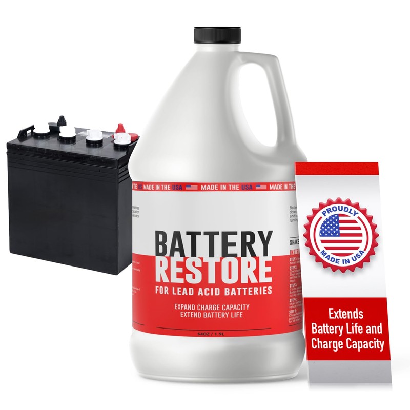 Battery Restore For Lead Acid Batteries - Made In USA - 64oz Formulated Solution Extends Battery Life & Expands Charge Capacity - Safe & Effective For Golf Carts, Motorcycles, Boats & ATVs - Non-Toxic