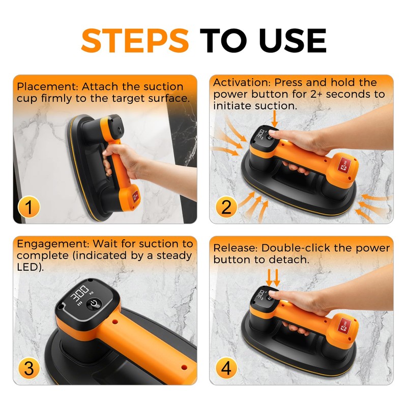 - Powerful Suction Lifter: Dual motors deliver 300KG (660 lbs) vacuum force for maximum performance.