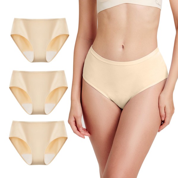 BATTEWA Mid-Waist Incontinence Underwear for Women Leak Proof Panties Protective Briefs for Bladder Control Washable Absorbency 40ML, 3Pack (X-Large,Beige)