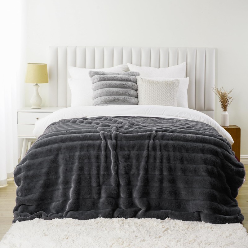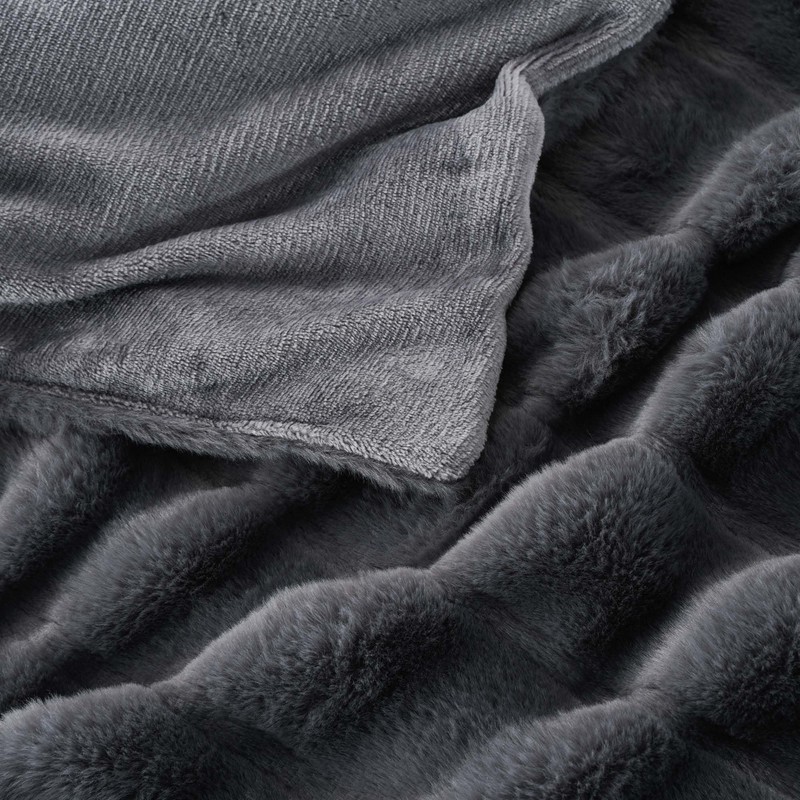 Battilo Dark Grey Faux Fur Throw Blanket, Rabbit Fur Blanket for Bed, Couch, ...