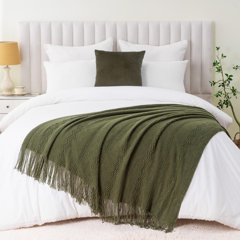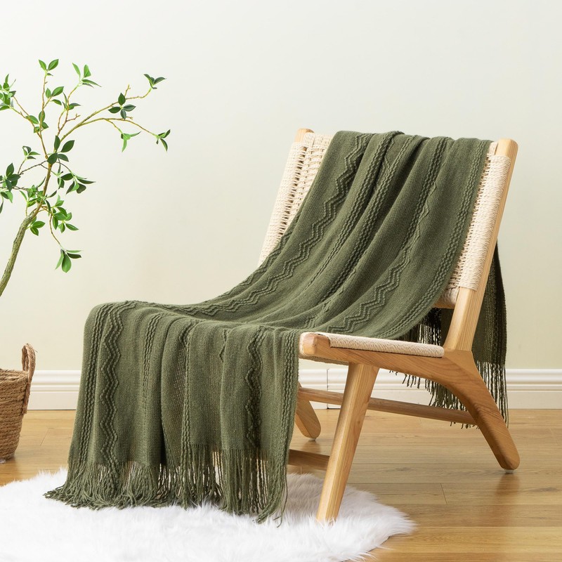 BATTILO HOME Army Green Throw Blanket for Sofa Couch Office Living Room Home Decor Lightweight Textured Soft Cozy Knit Throw with Tassels Suitable All Seasons 50"x60"